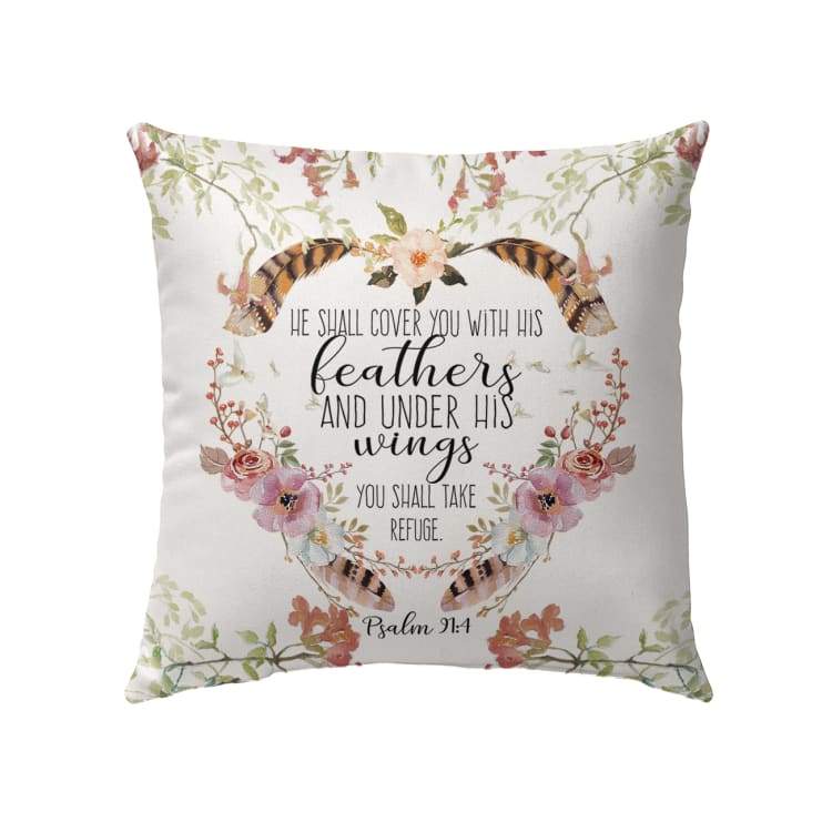 Bible Verse Pillow Case – Psalm 91:4 Feathers & Floral Design