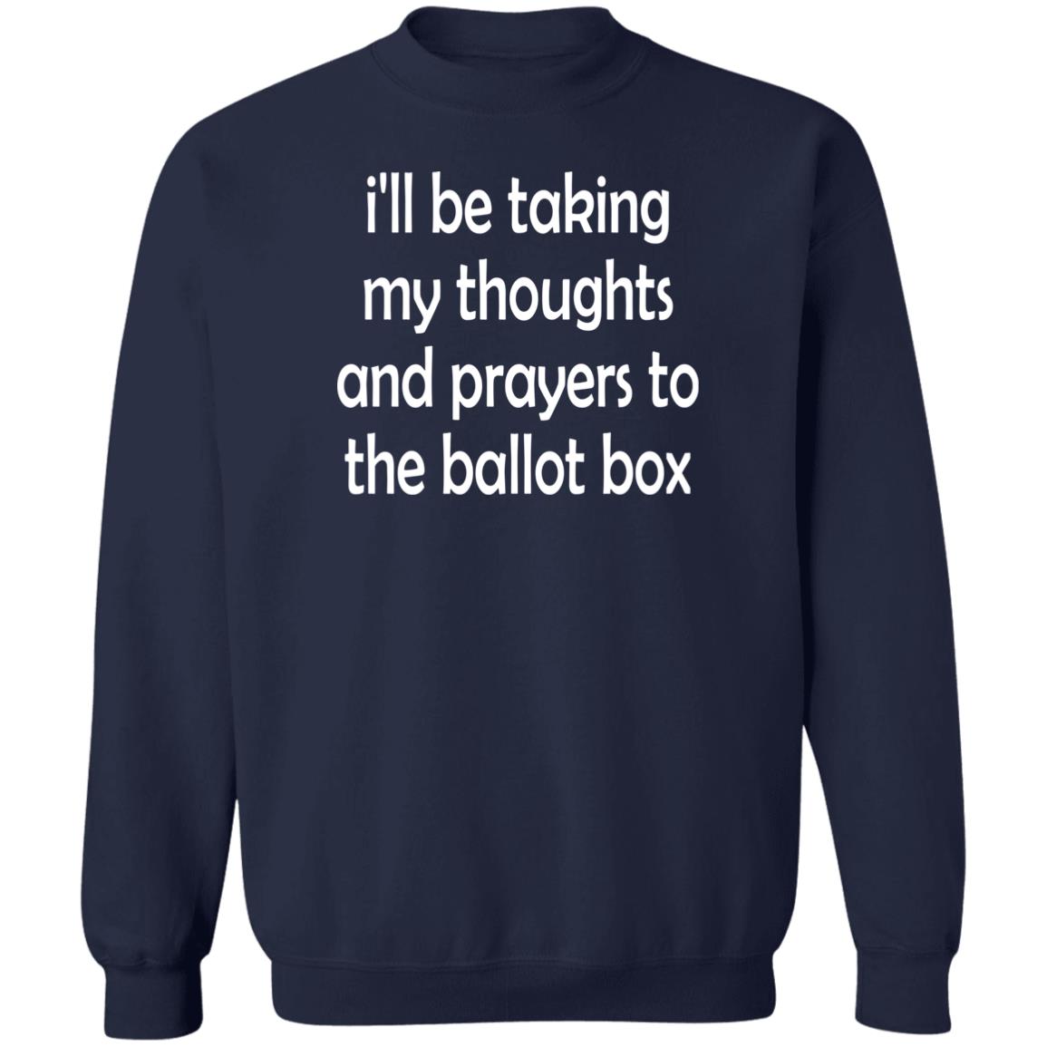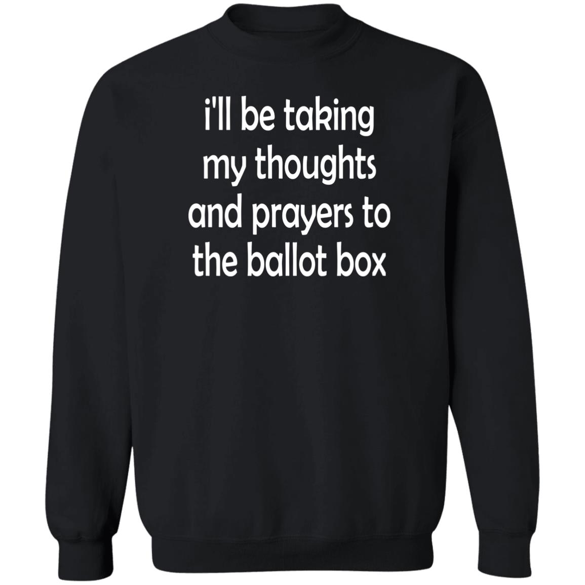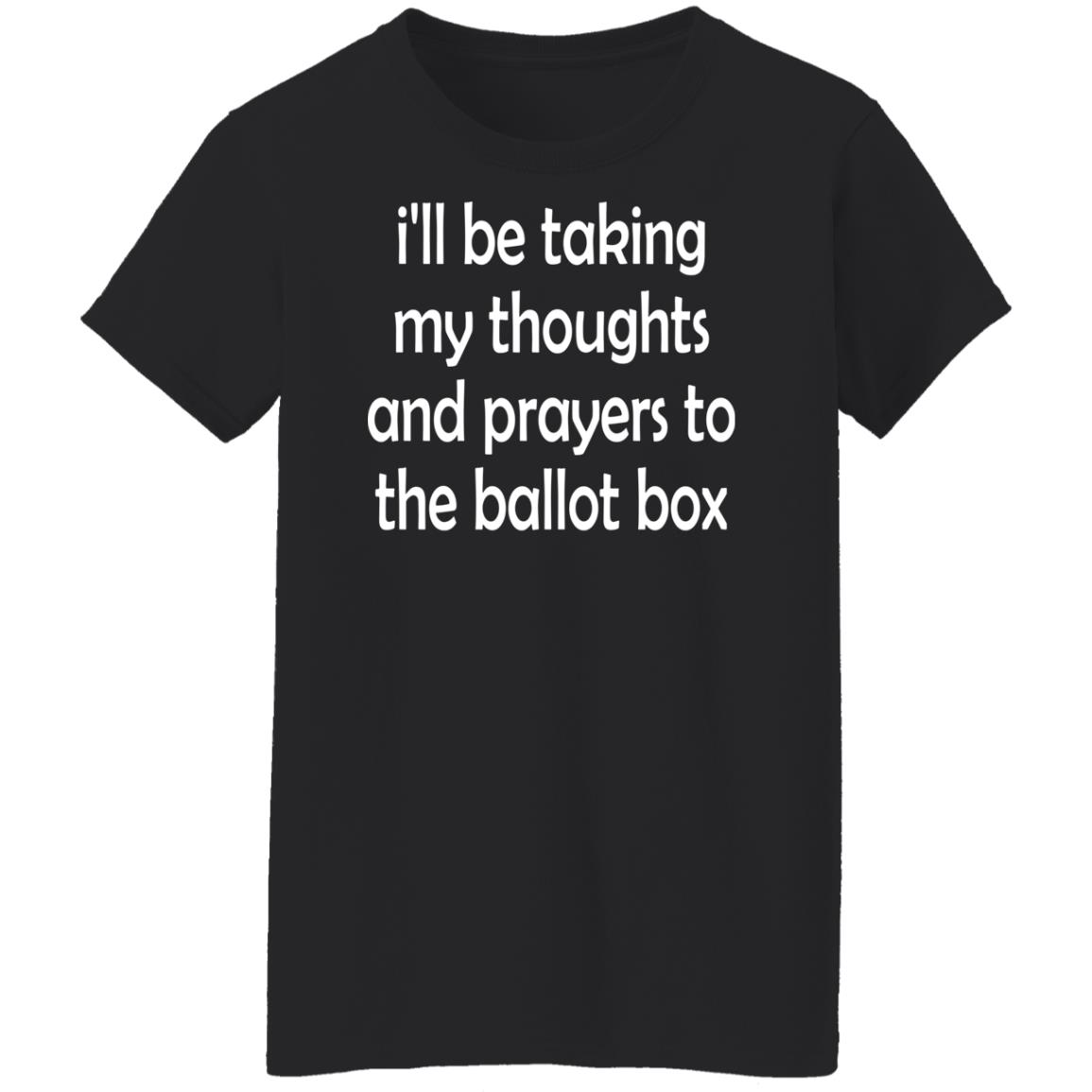 Sometimes words aren’t enough—action speaks louder. This “I’ll Be Taking My Thoughts and Prayers to the Ballot Box” T-shirt is a powerful statement piece for anyone who believes in making change through voting. With a simple yet striking white text design on a black tee, it delivers a clear message: prayers alone don’t change policy, but votes do.