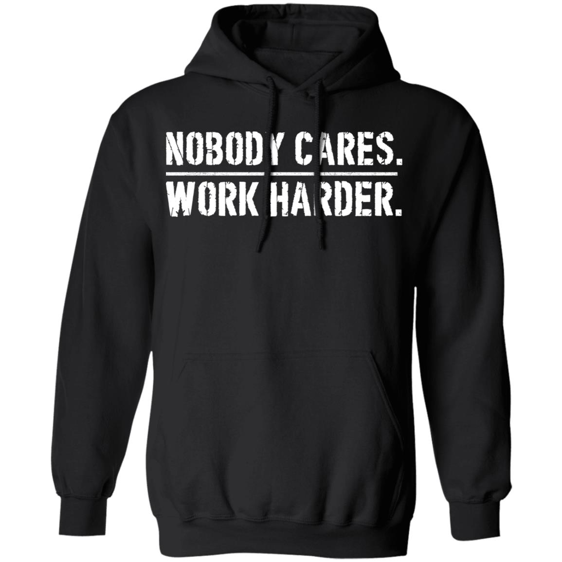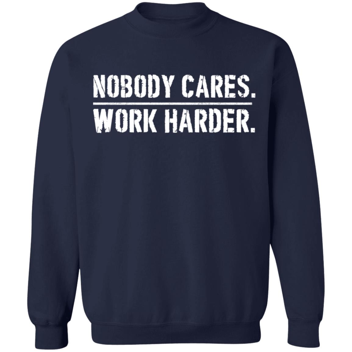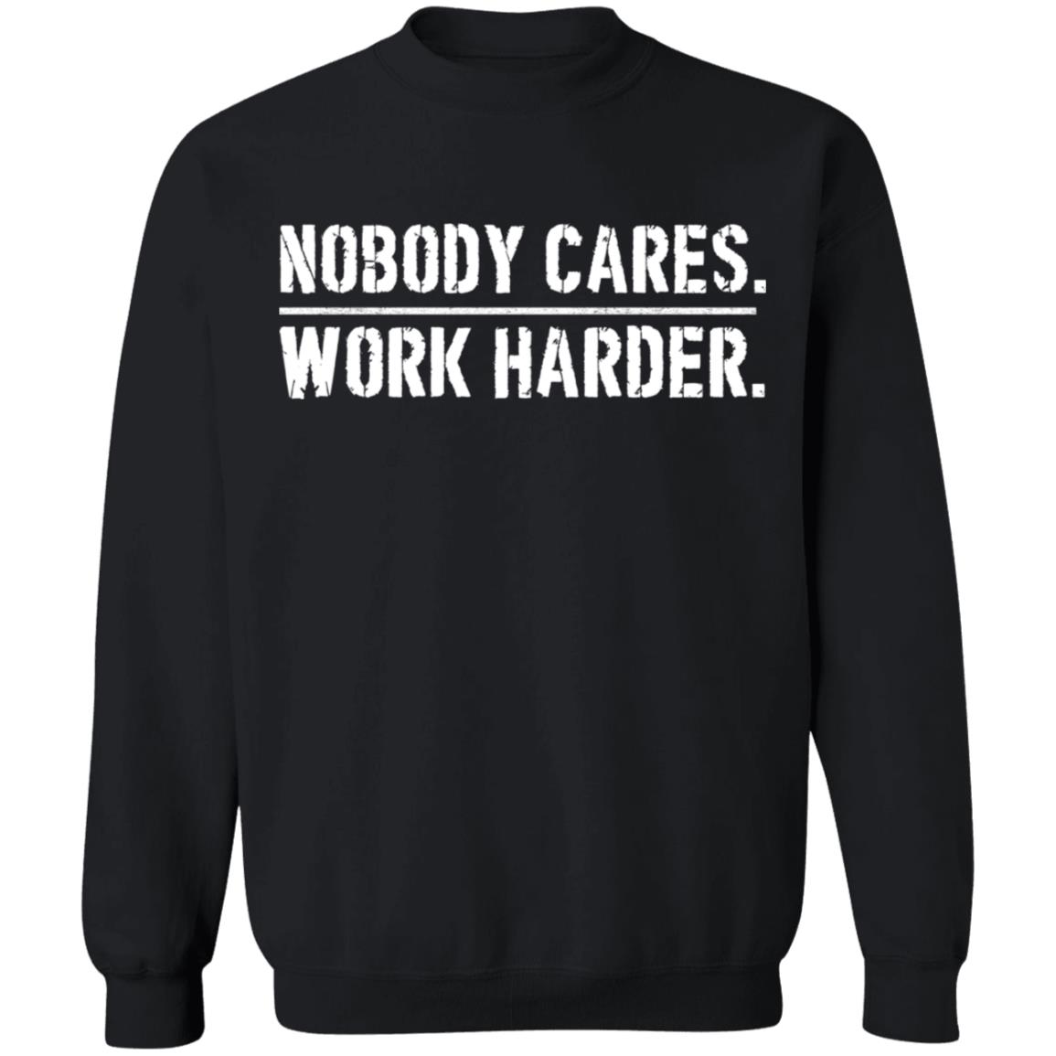 Say it with your set count. This high-impact tee features the mantra “NOBODY CARES. WORK HARDER.” in a rugged, distressed typeface. Made for daily wear with a soft hand feel and a classic crewneck fit, it’s your go-to shirt for lifting sessions, runs, and grind mode.