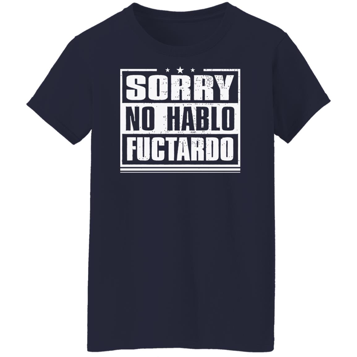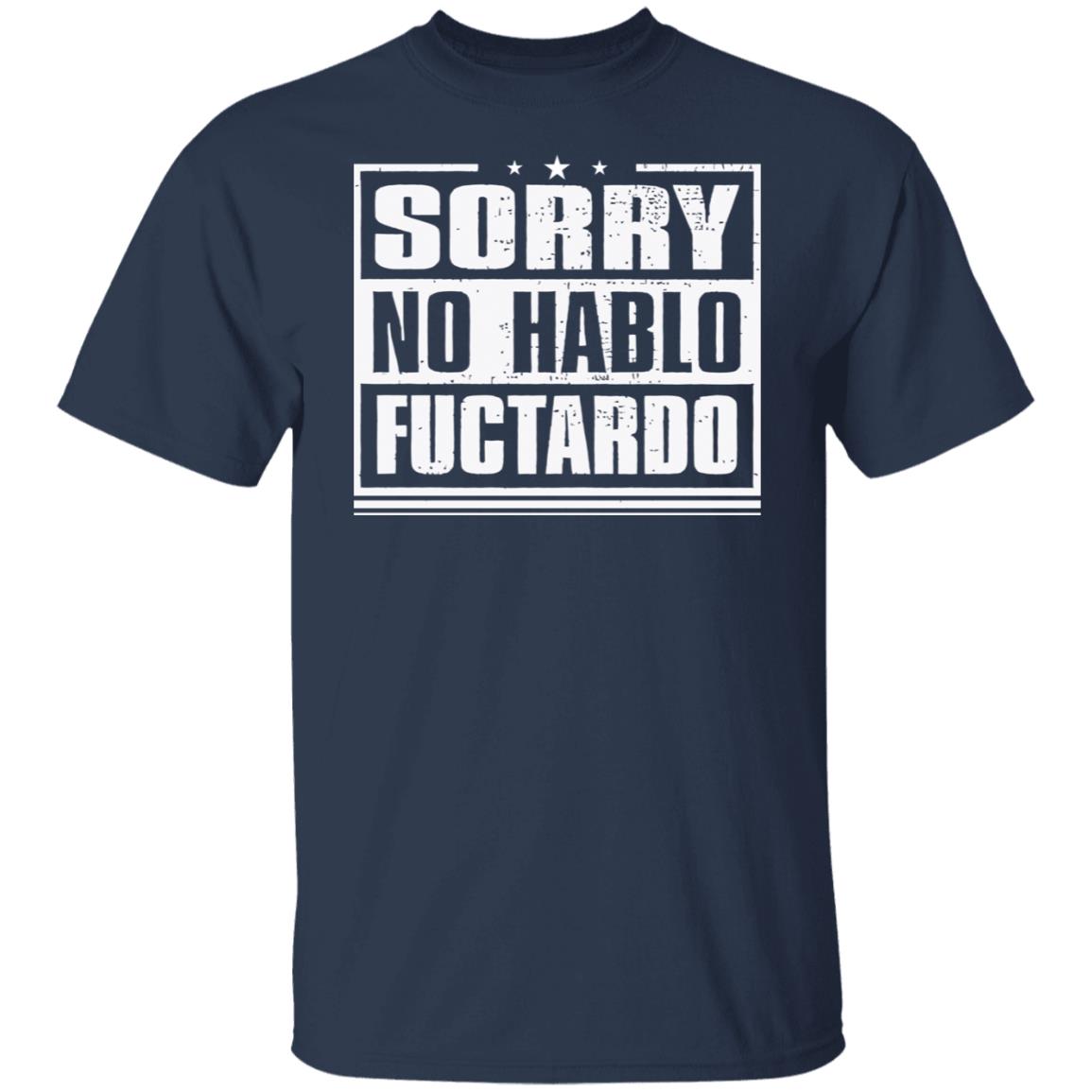 Make a bold impression with this funny and edgy graphic t-shirt. Designed with high-contrast white lettering on black fabric, it’s impossible to miss. The witty phrase “Sorry No Hablo Fuctardo” makes it a go-to tee for those who appreciate dark humor, sarcasm, and unapologetic style.