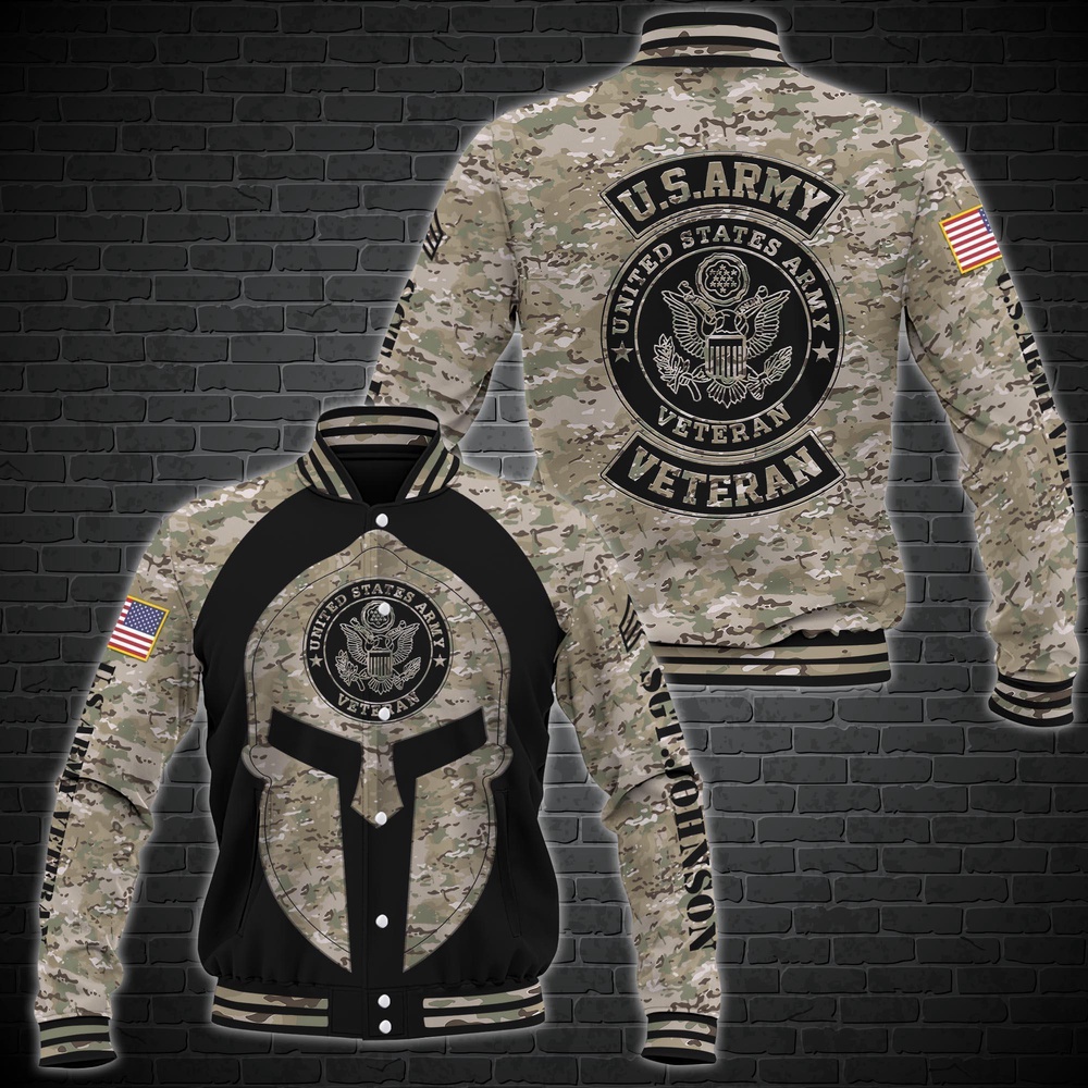 U.S. Army Veteran Camo Baseball Jacket – Military Tribute Bomber
